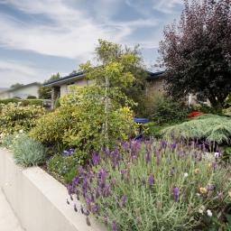 Outside, the partially fenced section is enhanced by beautifully maintained flower beds, offering privacy, colour, and easy-care appeal.