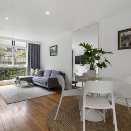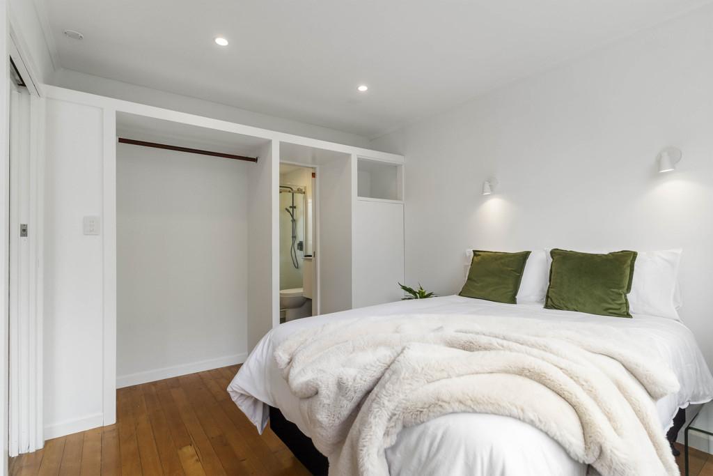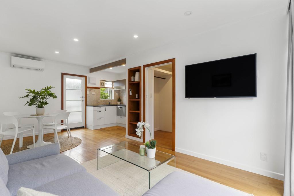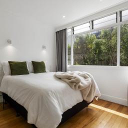 The vibe is all about effortless chic. Original honey-hued timber floors flow through the light-filled open plan, while large windows frame lush greenery to create the ultimate urban retreat. The functional layout offers a serene bedroom and a versatile living space that feels both airy and intimate. It is a rare find where high-end finish meets a top-tier location, offering the best of Auckland's most prestigious neighborhood.