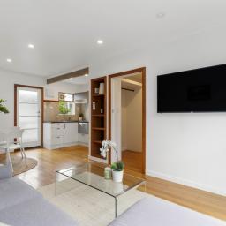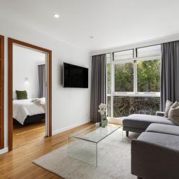Step into a sun-drenched sanctuary where 1960s character meets high-end contemporary design. Tucked away at the end of a peaceful Parnell cul-de-sac, this elevated one-bedroom gem in the iconic Claybrook complex has been meticulously renovated. From the sleek designer kitchen with stone-look splashbacks to the spa-inspired bathroom featuring monochrome tiling and matte black hardware, every inch radiates a sophisticated "welcome home" energy.