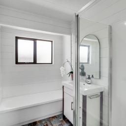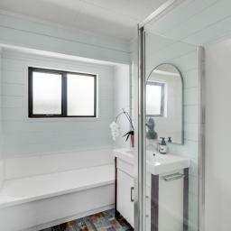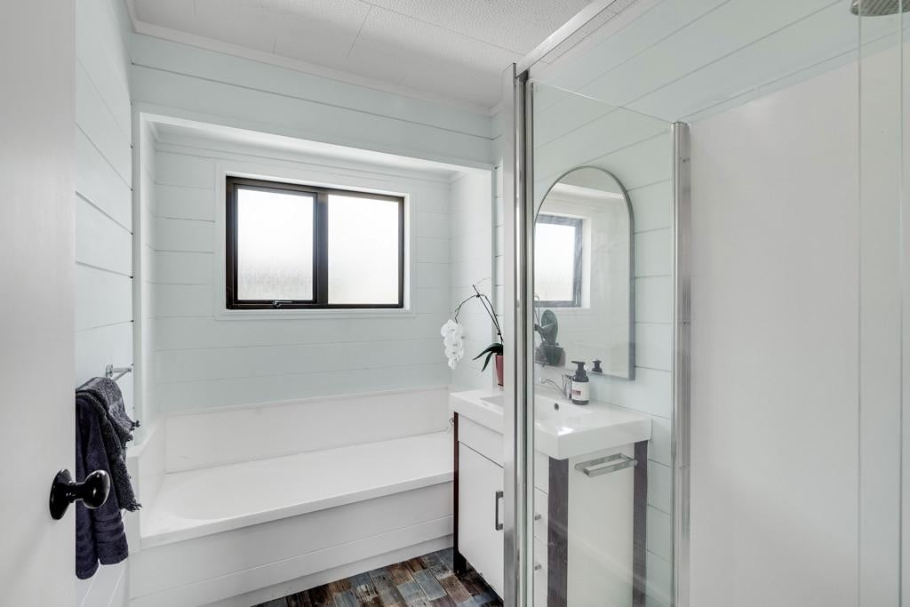 The bathroom is designed with functionality in mind and includes a separate toilet for added convenience. Year-round comfort is assured with a heat pump and HRV system, providing efficient heating and ventilation, while full insulation keeps the home warm in winter and cool in summer.