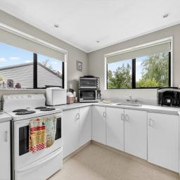 This sun-filled two-bedroom home offers easy, low-maintenance living with a warm and welcoming feel. The open-plan kitchen, dining, and living area flows seamlessly out to a private section, providing a peaceful space to relax and enjoy.