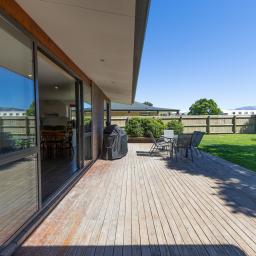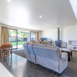 Accommodation includes three generous bedrooms, with the master boasting a beautiful ensuite and walk-in wardrobe. The remaining bedrooms are serviced by a family bathroom with a separate toilet. Completing the home is the convenience of internal-access double garaging, with the laundry neatly tucked away. The fully fenced section includes a playhouse and woodshed, all set against a backdrop of breathtaking alpine views.