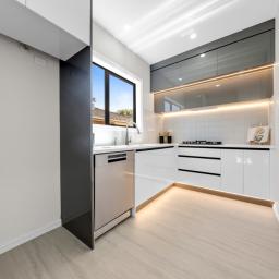 The heart of the home is the sleek open-plan kitchen, dining and living area, designed for easy living and seamless indoor-outdoor flow. Sun-filled and inviting, it opens to a private outdoor space ideal for entertaining, relaxing, or family time. The contemporary kitchen is fitted with premium appliances and refined finishes, creating a space that is as functional as it is stylish.