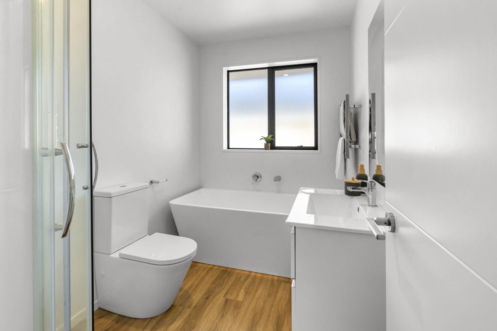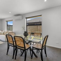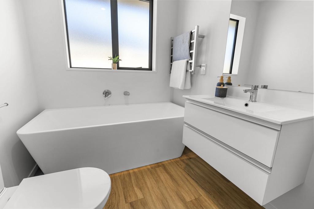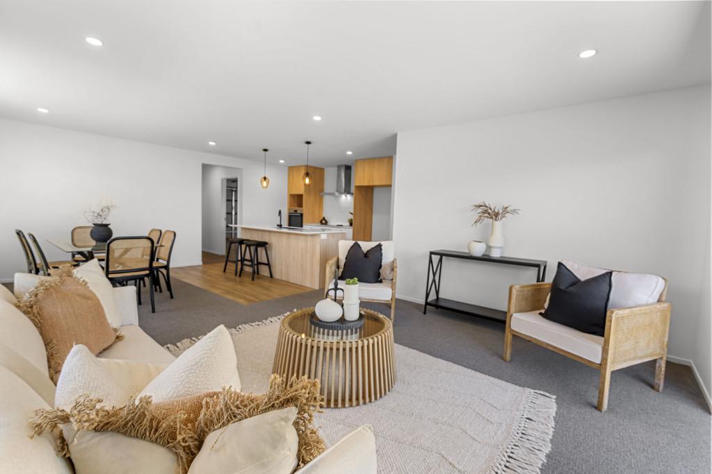 Built in 2023, this stylish and contemporary home delivers easy modern living on a manageable, fully fenced 465m² section. Thoughtfully designed, it offers four good size bedrooms, including a generous master suite located in a separate wing and boasts a walk-in robe and private ensuite. The main bathroom is nicely appointed and features a luxurious free-standing bath, perfect for unwinding at the end of the day. At the heart of the home is a light-filled open plan living area that flows seamlessly to a sunny patio via a slider, creating an ideal space for both everyday living and relaxed entertaining. The sleek kitchen is a standout, showcasing quality stone benchtops, large pantry and excellent functionality with Bosch appliances. Comfort is assured year-round with the convenience of a heat pump, while a double internal access garage provides secure parking and additional storage. This is a smart, low-maintenance property with scope to add your own touch that will appeal to families, professionals, or anyone seeking a near-new home with modern appeal.