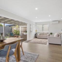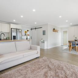 The separate lounge with feature fireplace offers a cosy retreat, while the open-plan kitchen and dining area forms the heart of the home, flowing seamlessly to a private, covered outdoor entertaining deck - perfect for year-round enjoyment.