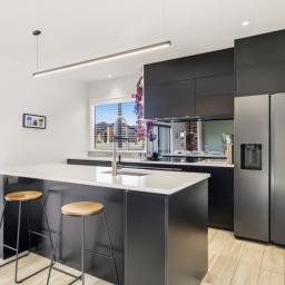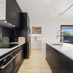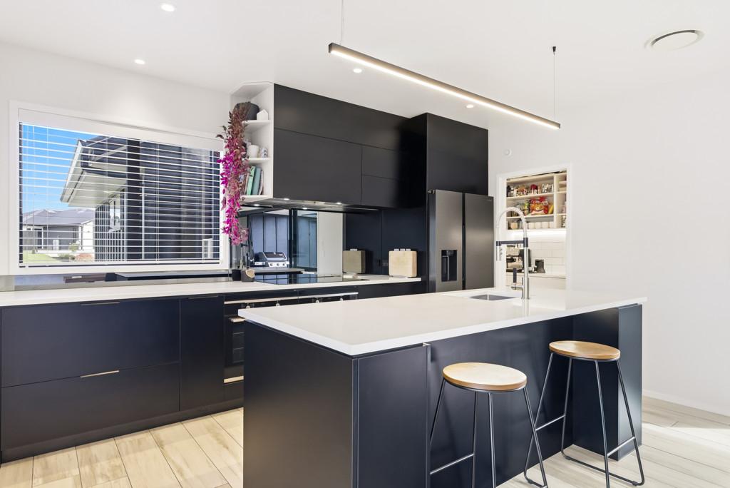 At the heart of the home, the sleek kitchen is a true showpiece, featuring generous stone benchtops, two self-cleaning Electrolux ovens, premium appliances, and a complementary scullery. It's a space made for cooking, gathering, and creating memories.