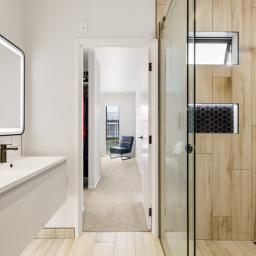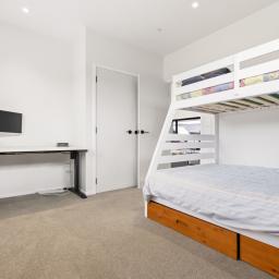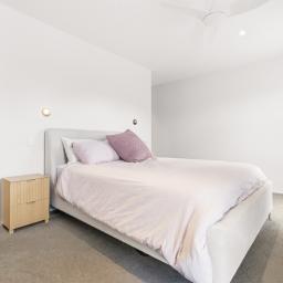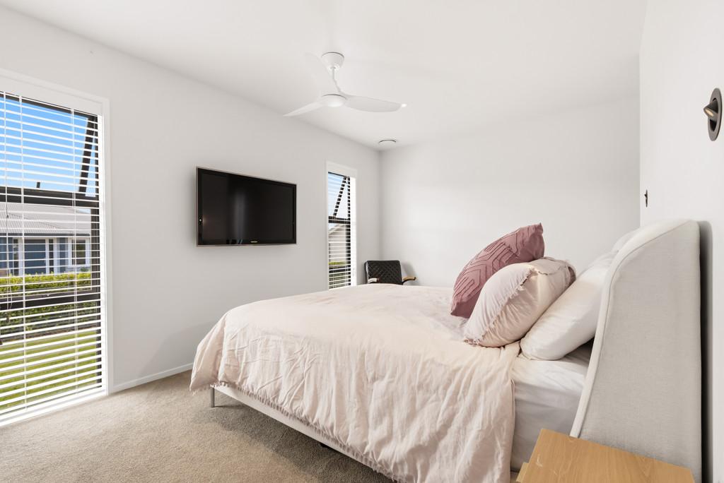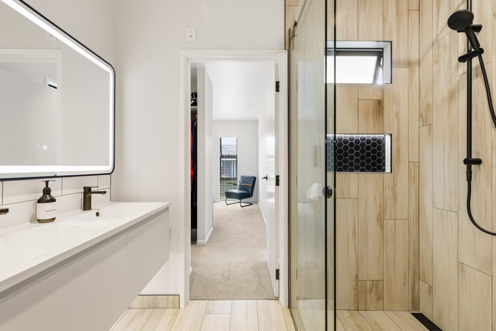 The home offers three generous bedrooms and two contemporary bathrooms, including a master suite with a walk-in wardrobe and a fully tiled ensuite featuring a his-and-her shower.