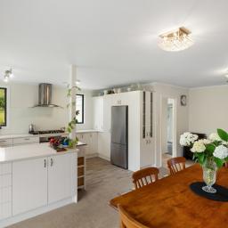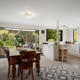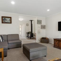 At the heart of the home is a modern, updated kitchen and dining area, complemented by a cosy sitting space that opens seamlessly to a covered outdoor entertaining area-ideal for relaxed living and year-round entertaining. A wood fire with wetback provides warmth and efficiency, ensuring comfort through all seasons.
