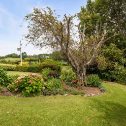 Outside, the property continues to impress with an established orchard featuring a wide range of fruit trees including peaches, apples, plums, nectarines, tamarillo, passionfruit, figs, persimmon, feijoa, guava, lemons, oranges, and even coffee. Established vegetable gardens and a chicken coop further enhance the self-sufficient lifestyle appeal.