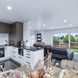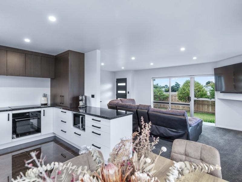 At the heart of the home is a sleek contemporary kitchen featuring ample benchtops, quality modern appliances, and excellent storage, all flowing effortlessly into light filled open plan living. Designed for everyday comfort, this is a space you will love spending time in.