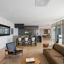 Recently renovated to an exceptional standard, the penthouse showcases custom stone joinery, integrated furniture, and meticulous attention to detail throughout. The result is a sophisticated, gallery-like interior flooded with natural light and designed for both everyday comfort and elegant entertaining.