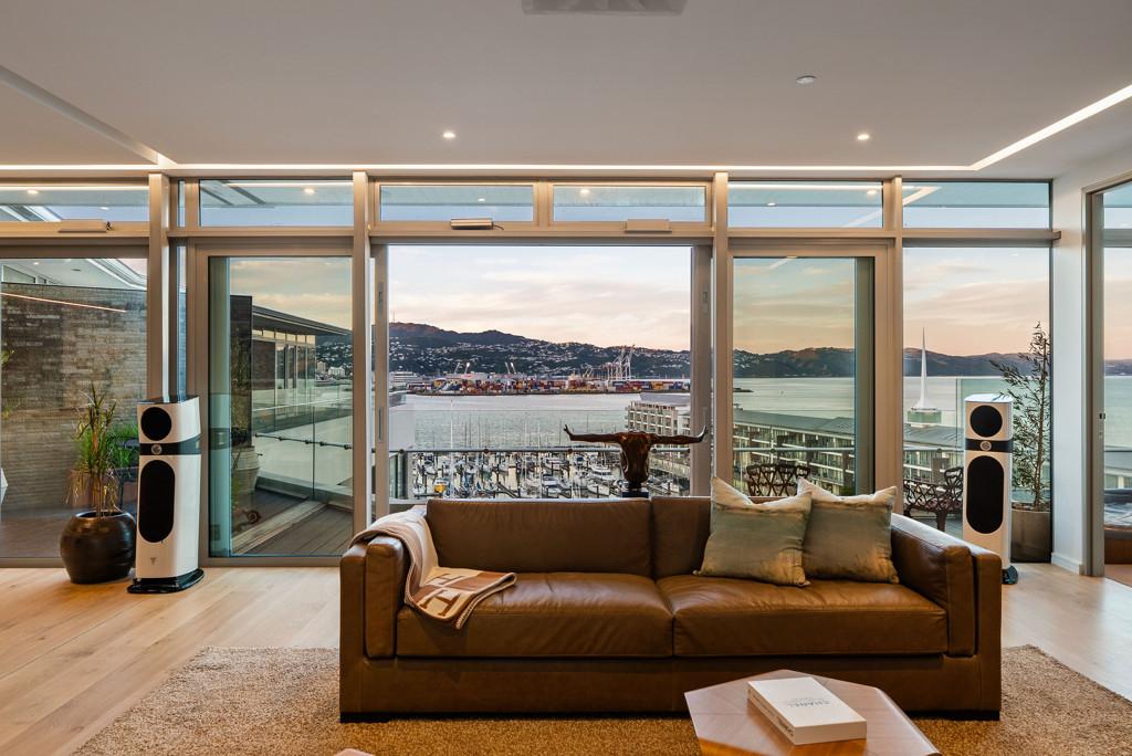 Positioned in one of Wellington's most prestigious waterfront precincts, this exceptional penthouse at 602a/22 Herd Street delivers refined, sun-drenched living with uninterrupted harbour views. Set high above Chaffers Dock, the residence enjoys all-day sun from sunrise to sunset, breathtaking outlooks, and seamless indoor-outdoor flow across expansive decks.