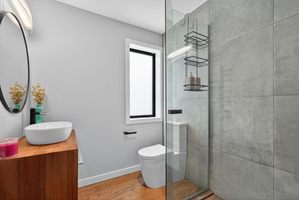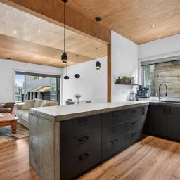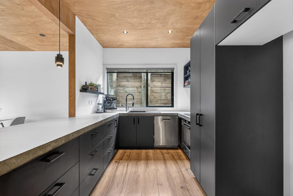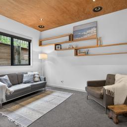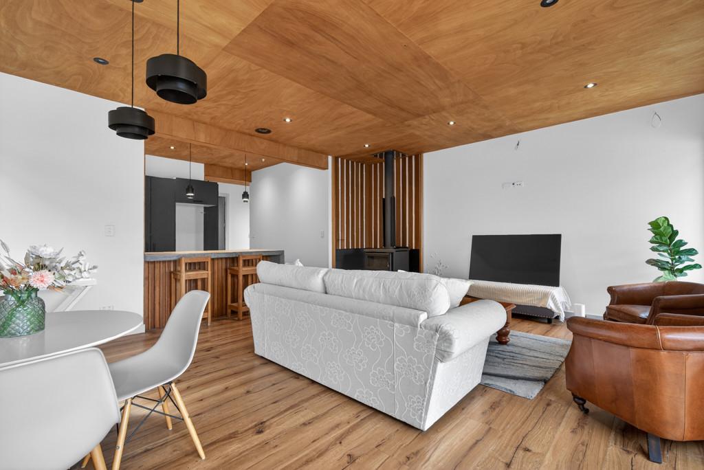 Downstairs, the open plan kitchen, dining and living area forms the central hub of the home, complete with a woodburner and effortless indoor/outdoor flow to a sun-soaked deck - perfect for entertaining or family living. The modern kitchen includes a breakfast bar and concrete benchtop, while a second separate living room provides excellent flexibility. Additional conveniences include a guest toilet, mud room, separate laundry, and internal access double garage.
