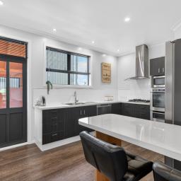 The kitchen is well-appointed, featuring dishwasher drawers, Westinghouse ovens, a walk-in pantry, and a wine fridge, with a breakfast bar ideal for casual dining.