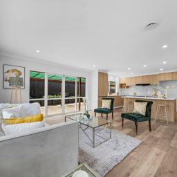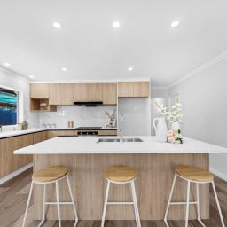 The spacious open plan layout creates an easy, welcoming flow through the living, dining and kitchen areas. The kitchen sits right at the heart of the home with wide benchtops, generous storage and a clear connection to the large covered alfresco, making everyday living and entertaining effortless.