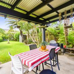 From leadlight windows and warm timber finishes to brass hardware and elegant fittings, every detail has been considered. Sunlight pours into the living spaces, highlighting the blend of heritage character with contemporary comfort. The modern kitchen is the perfect hub, flowing seamlessly to an outdoor entertainment area that feels like a tropical retreat. Surrounded by lush, established greenery, this space creates a private oasis you'll never want to leave.