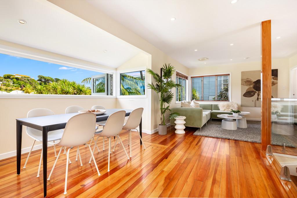 With garage access at street level and just a short walk down to the front door, the arrival is easy and intuitive. Once inside, the home opens up beautifully, flooded with sun and framed by a lush green outlook toward Zealandia. This is a home that works hard for families and professionals alike, offering generous space and flexibility.