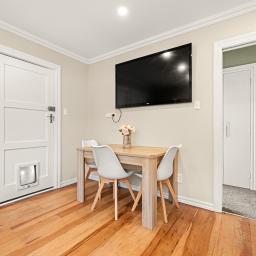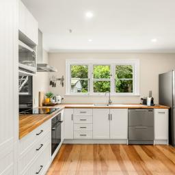 At the front of the property, a huge double garage offers serious room for the boys and their toys, tradies' gear or any keen DIY enthusiast, with drive-through access to the rear of the section and an additional off-street park for extra vehicles, trailers or weekend projects. Step inside to a tastefully renovated interior where all the hard work has been done – move in, put your feet up and simply enjoy light-filled open-plan living, a modern kitchen and three comfortable bedrooms that will suit families, first-home buyers or downsizers alike.