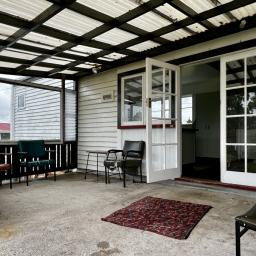 Inside, the home is surprisingly spacious, featuring large living areas, a huge master bedroom, and a welcoming entrance room that could easily double as a study or playroom. The kitchen is fairly modern and is complemented by an adjoining laundry and walk-in pantry, along with the convenience of a second toilet. A large wetback wood burner sits centrally in the living area, providing abundant warmth and hot water through the winter months.