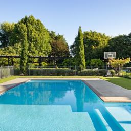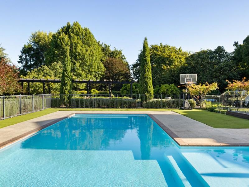 Outside, the lifestyle continues. Established gardens surround the homes, with a pool, a large backyard perfect for children and pets, and a separate garage housing a gym. Firewood storage and space for a ride-on mower add convenience, while pathways, patios, and lawns encourage outdoor living and entertaining.