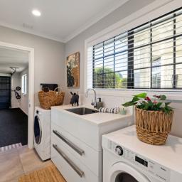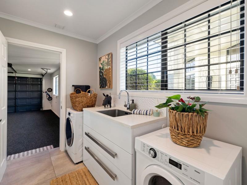 Practicality is seamlessly integrated with a carpeted internal access double garage, leading to a generous laundry with ample storage, along with a temperature-controlled wine cellar.