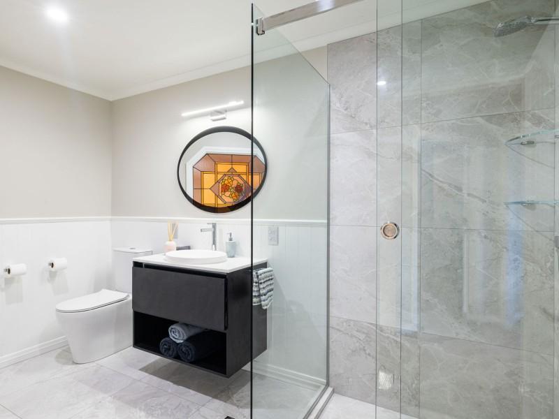 The cottage is equally charming, with raked ceilings and polished exposed aggregate floors giving a sense of space and style. The bedroom includes a built-in robe, and an additional room provides flexibility for guests or a home office. The bathroom is fully tiled for a modern, clean finish. This separate dwelling provides comfort and independence while maintaining the same warm, inviting character as the main home.