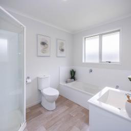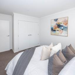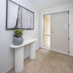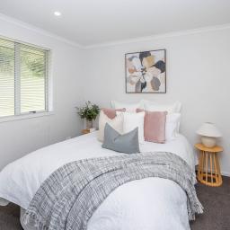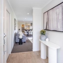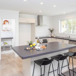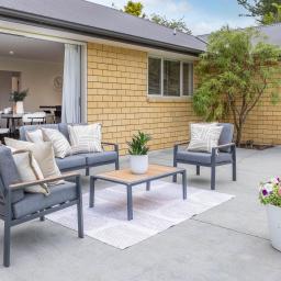 Constructed with enduring, low-maintenance materials, the home is thoughtfully designed for contemporary family living. Brick cladding, colorsteel roofing and double glazed joinery are complemented by a timeless interior palette of neutral tones. A north west orientation ensures the living spaces are bathed in natural light, creating warmth and comfort throughout the day.