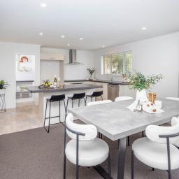 At the heart of the home, the expansive open-plan living area flows seamlessly outdoors, offering exceptional scope for further landscaping and the potential to create a resort style outdoor environment. A separate lounge provides a refined retreat, ideal for quiet evenings or family gatherings. The kitchen is both elegant and practical, featuring generous bench space, ample storage and a well-appointed scullery.