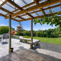The charming three-bedroom home is warm and inviting, featuring double glazing throughout to ensure year-round comfort. Light-filled living spaces flow effortlessly, offering both functionality and relaxed living. The kitchen and dining area are well positioned, with views out to the gardens, making everyday living and entertaining a pleasure.