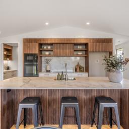 At the heart of the home is a locally crafted kitchen, beautifully finished and fitted with premium appliances. A generous walk-in pantry adds both practicality and storage, keeping the main kitchen space clear and functional. The kitchen flows seamlessly into the open-plan living and dining area, creating a space that feels spacious, polished, and easy to live in. Daikin ducted heating is integrated throughout the home, providing quiet, year-round comfort.