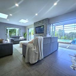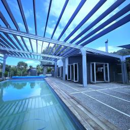 Large swimming pool with heat pump and solar heating and dolphin cleaner
