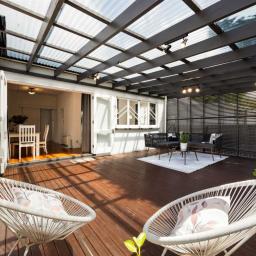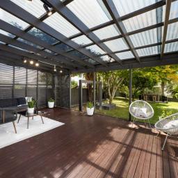 Light-filled open-plan living with French doors to an enclosed deck
