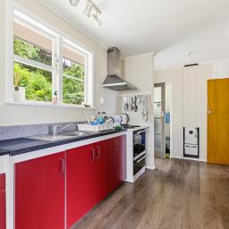 Step through the front door into a sunny and spacious lounge overlooking the front garden, creating a welcoming space to relax. The kitchen sits to the rear of the home, with views towards the bush-clad garden. The kitchen is complemented by additional dining space—an appealing setup for everyday living.