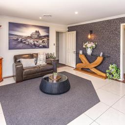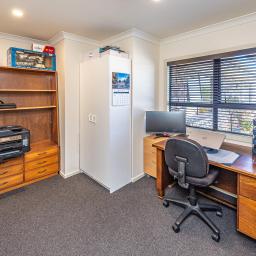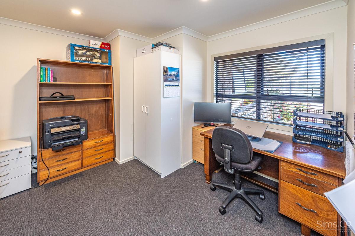 Accommodation is generous and well-considered. Five bedrooms are complemented by a dedicated home office, ideal for work-from-home living. The master suite is a sanctuary of its own, complete with a large tiled ensuite and walk-in wardrobe. Four additional bedrooms are serviced by a beautifully tiled family bathroom and a separate toilet. Climate control is assured year-round with two ducted air-conditioning systems, a wood burner, and double glazing throughout.