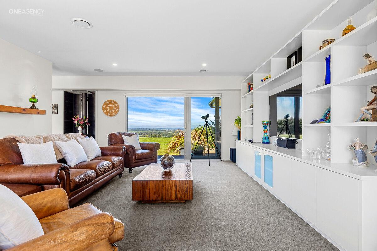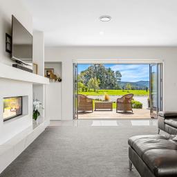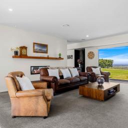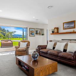 Set on 4 hectares, the land is well laid out into four paddocks, each with water troughs and currently grazed by neighbouring stock - ideal for an easy-care lifestyle setup. The substantial 294m² home has been thoughtfully designed to maximise its setting, with expansive glazing and seamless indoor-outdoor flow that captures sun, shelter, and views from every angle.