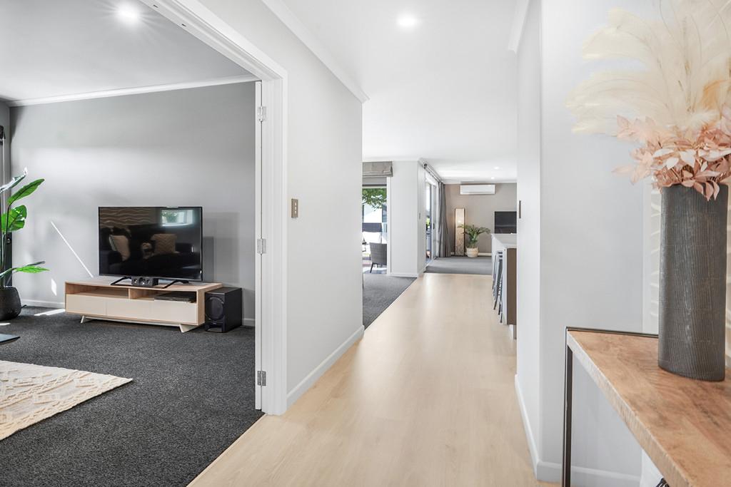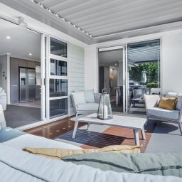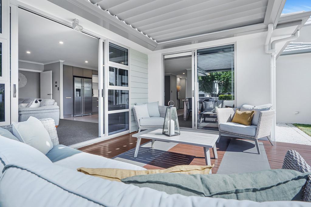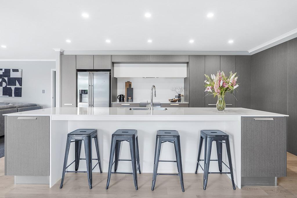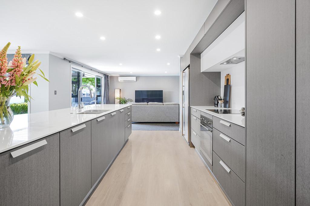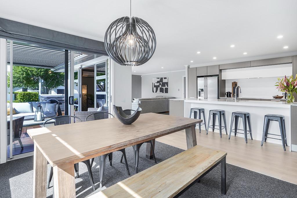 At the heart of the home lies a stunning, award-winning kitchen designed by Robin Caudwell. Featuring quality appliances and exceptional attention to detail, this space flows effortlessly into the open-plan living and dining areas, creating a central hub ideal for both everyday living and entertaining. Large doors extend the living space to a private outdoor sundeck, complete with a rain-sensor louvre system, allowing you to enjoy outdoor entertaining in comfort throughout the seasons.