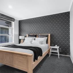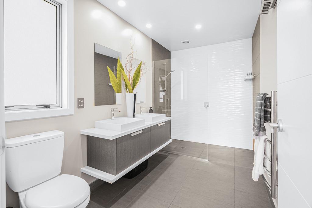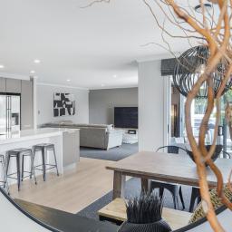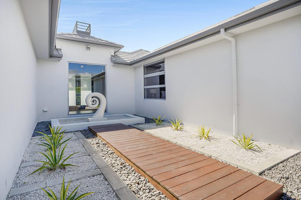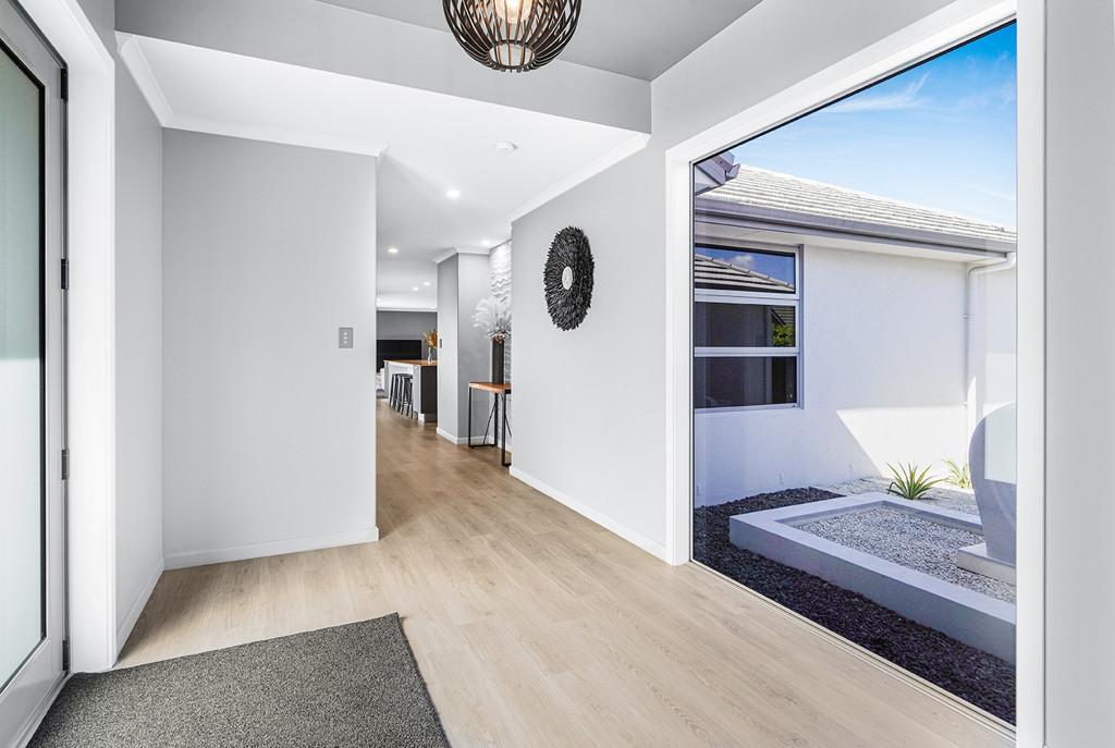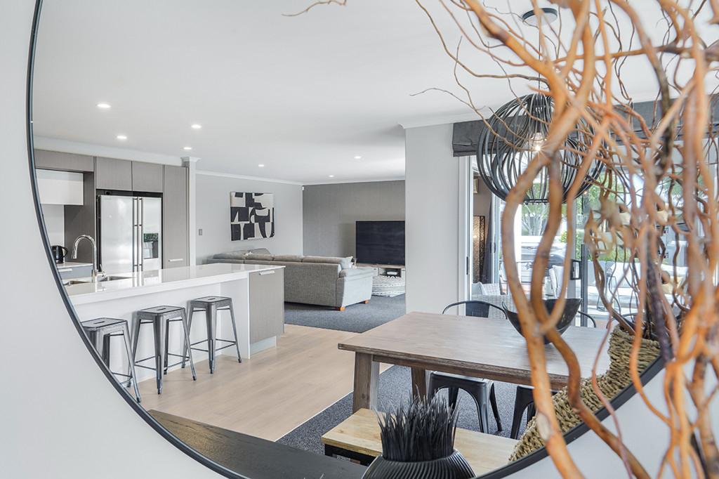 At the heart of the home lies a stunning, award-winning kitchen designed by Robin Caudwell. Featuring quality appliances and exceptional attention to detail, this space flows effortlessly into the open-plan living and dining areas, creating a central hub ideal for both everyday living and entertaining. Large doors extend the living space to a private outdoor sundeck, complete with a rain-sensor louvre system, allowing you to enjoy outdoor entertaining in comfort throughout the seasons.