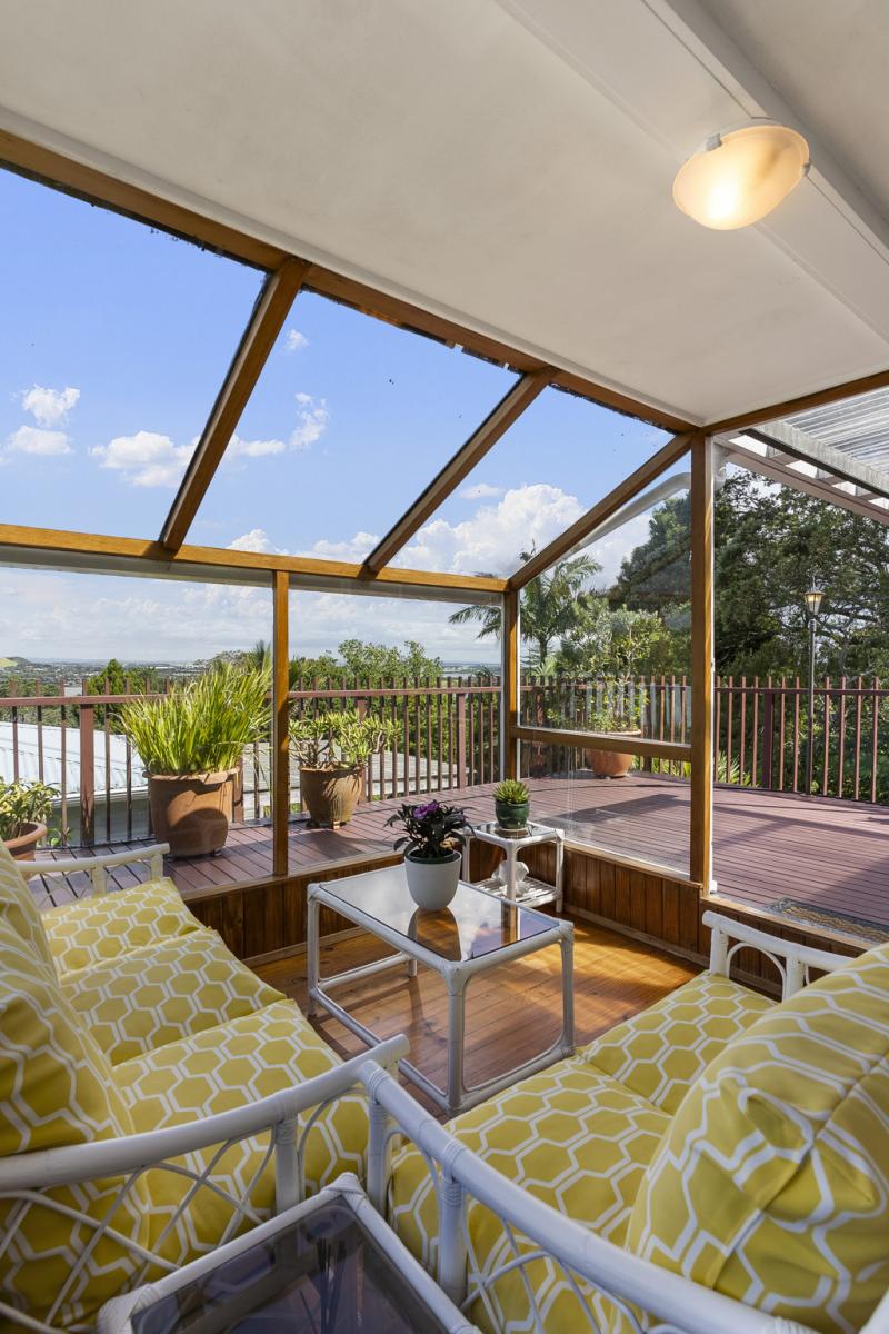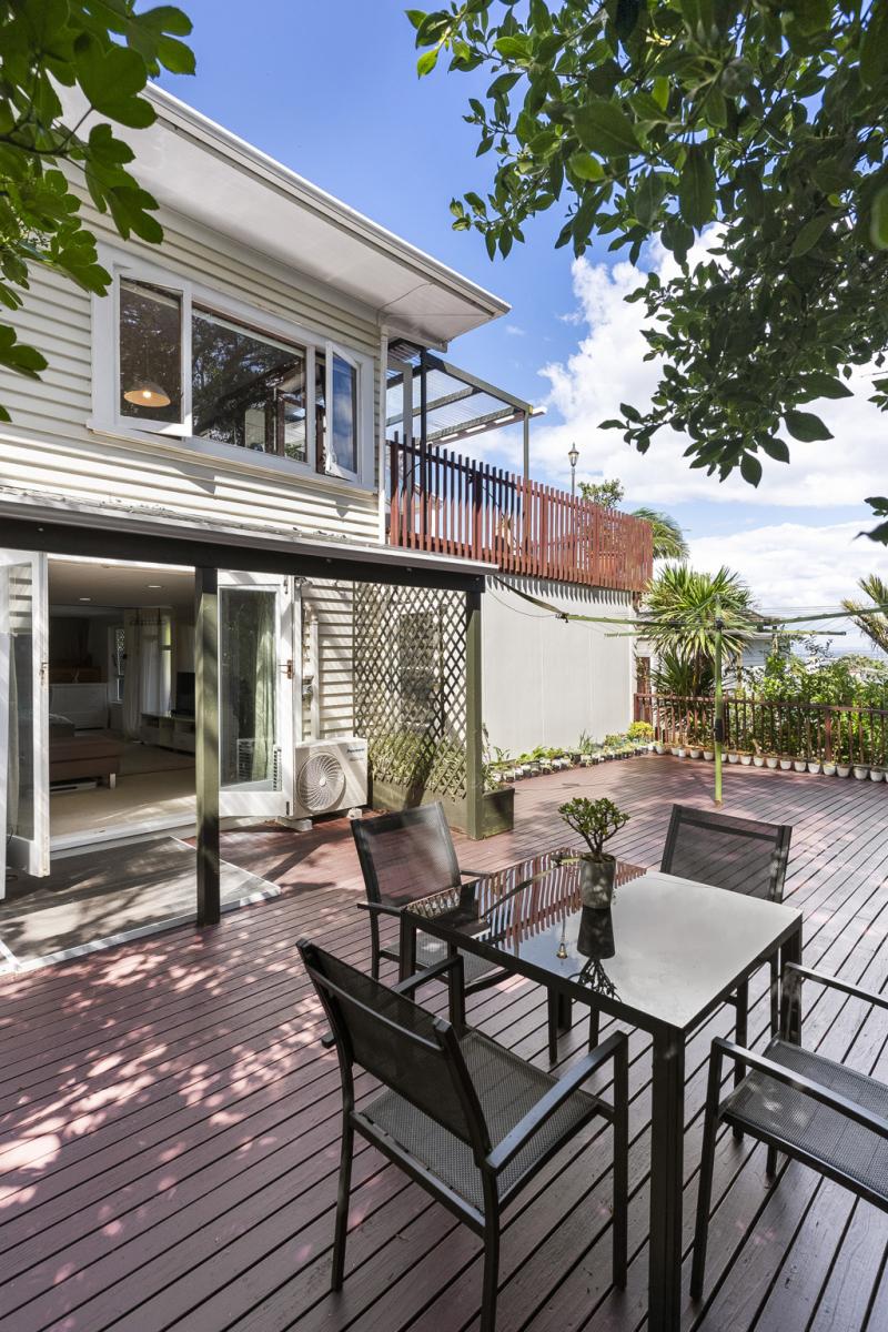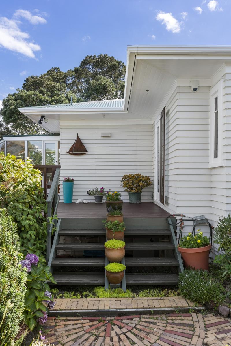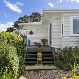 Featuring one bedroom plus a huge rumpus room, two bathrooms, separate lounge and dining, and a sun filled conservatory, there's room for the whole family and then some. Step outside onto expansive decking, explore private bush walks, or unwind in your established, sunny English garden while taking in the spectacular sea vistas.