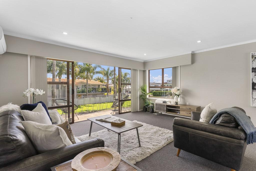 • Light-filled living opening to a sunny balcony with Rangitoto views