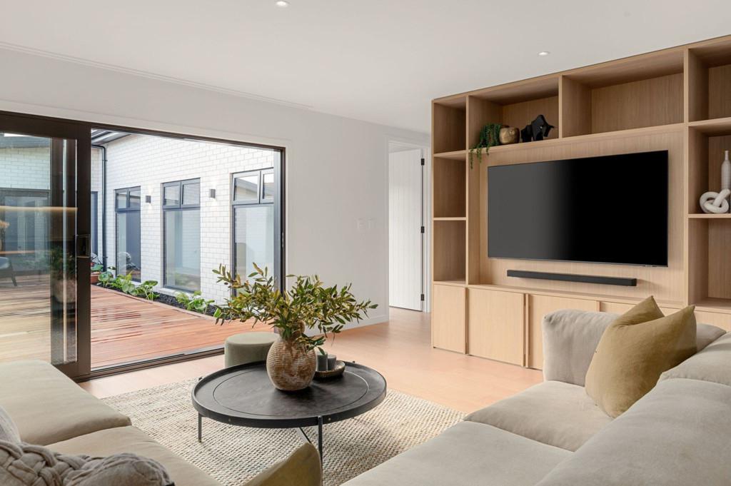 Part of the Kauri Point subdivision, the homes enjoy good connectivity to both new and existing town centres in Hamilton's northern suburbs and connect to Rototuna high schools via a pedestrian underpass. Their discreetly positioned garages are accessed from Kakariki Lane and their entrances opening on to Kauri Point Drive, giving them great kerbside presence. Known as The Links, their name is derived from the way their hallways link their garage to the main body of the home.
