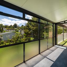 The open-plan kitchen and dining area flows gracefully into a generous lounge featuring a heat pump and ceiling fan, seamlessly extending to a sun-drenched conservatory and adjoining deck with roll-down blinds - ideal for hosting gatherings throughout the year. Three spacious bedrooms provide built-in wardrobes, while the centrally located bathroom and second toilet offer practical convenience for modern living. Fully Healthy Homes compliant, this home is comfortable, and move-in ready.