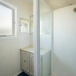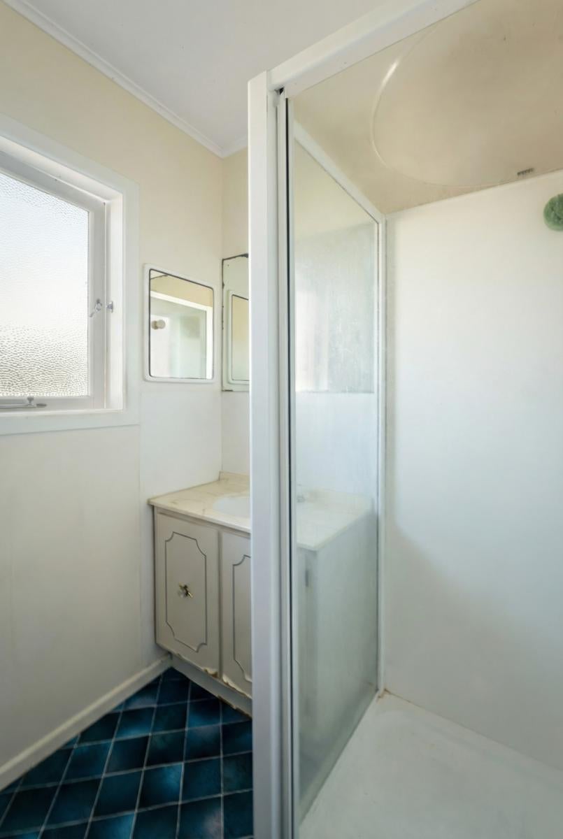 The bathroom is functional, featuring a shower, shower dome, and vanity, though it would benefit from an upgrade, complemented by a separate toilet and laundry.