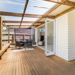 The main residence features 2 bedrooms, a separate lounge with a wood burner, a heat pump in the hallway, a fully separate kitchen with dining area and a private bathroom. Fresh new carpet throughout enhances the modern and inviting feel of the home. Bifold doors from the lounge open onto a covered front deck, providing excellent indoor-outdoor flow for entertaining or relaxing with family.