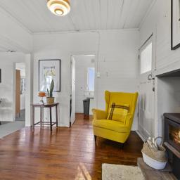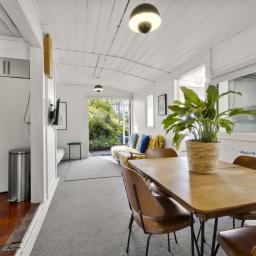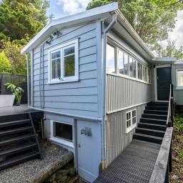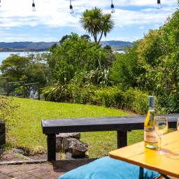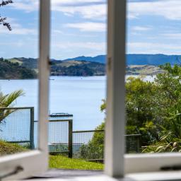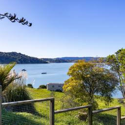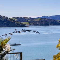 Inside, warm timber accents and a cosy wood fire provide year round comfort. The home is light, bright and airy, meeting Healthy Homes Standards. The master bedroom enjoys ever changing harbour views, from early morning mist to golden sunsets over the water. Open plan living and dining flow seamlessly outdoors to a cobblestone patio and front lawn, ideal for relaxed entertaining.