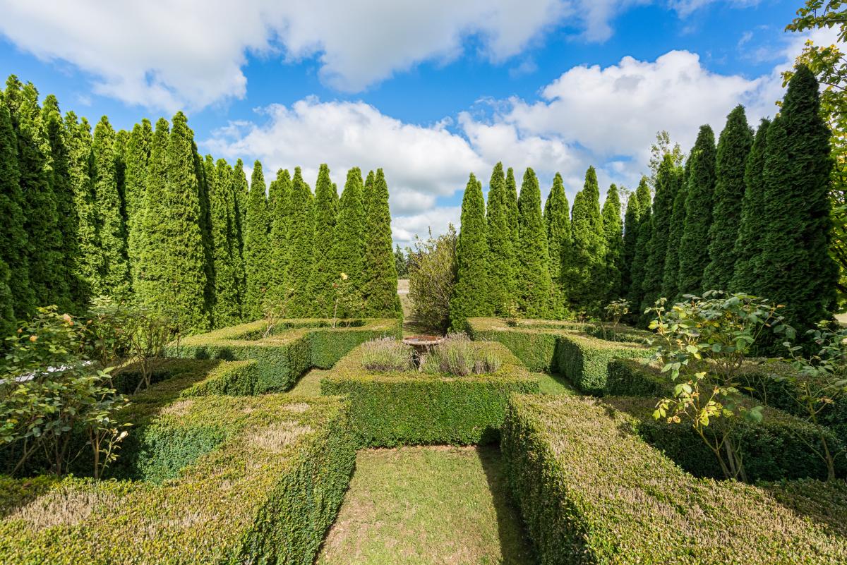 Beyond the home, the gardens leave a lasting impression through their maze hedging and conifer borders, while the wider land delivers an Olympic-sized 60m x 20m dressage arena, a stable conversion, seven bays of open and lock up storage with further scope to develop, and shelter with eight well-fenced and hot-wired paddocks with selected auto troughs, placing the property firmly in equestrian territory.