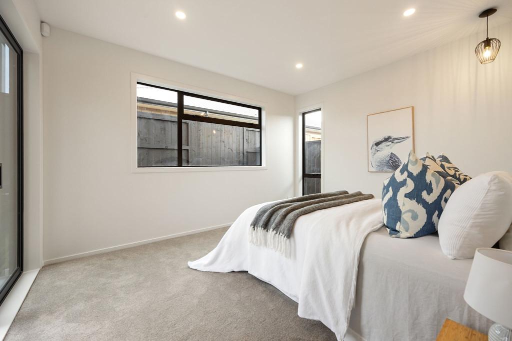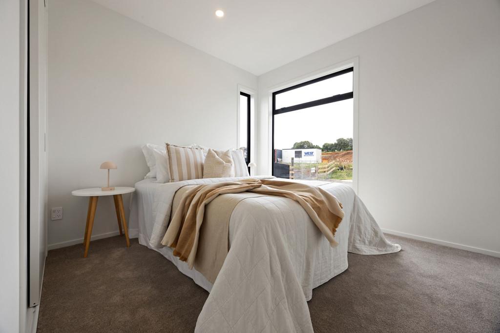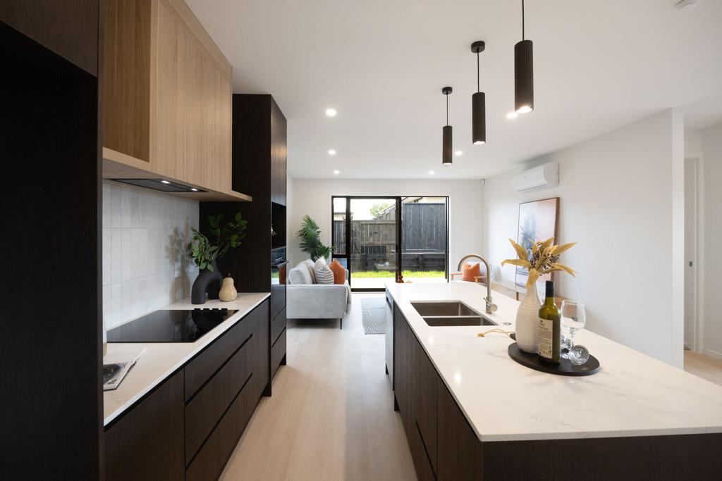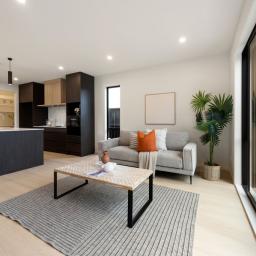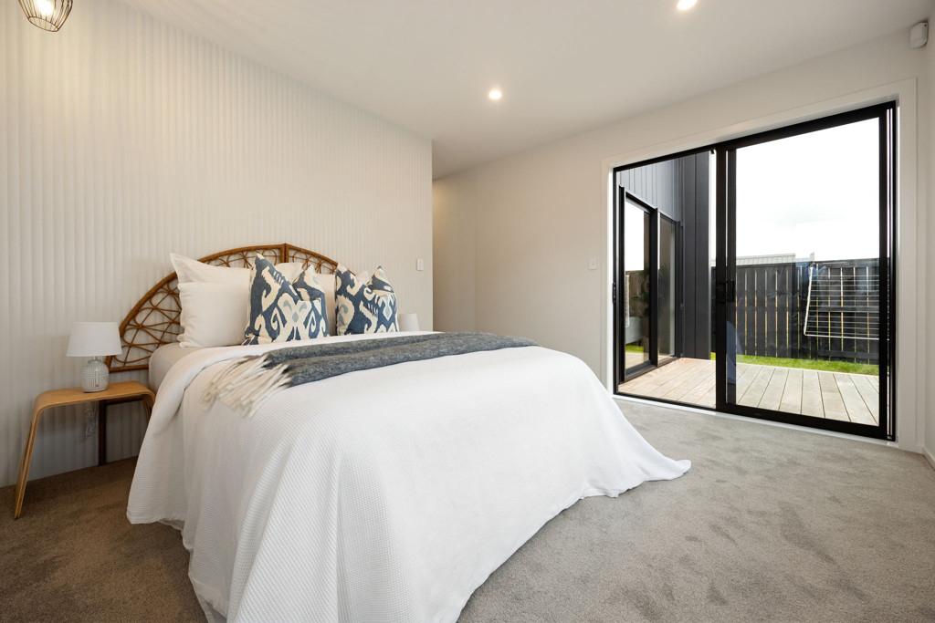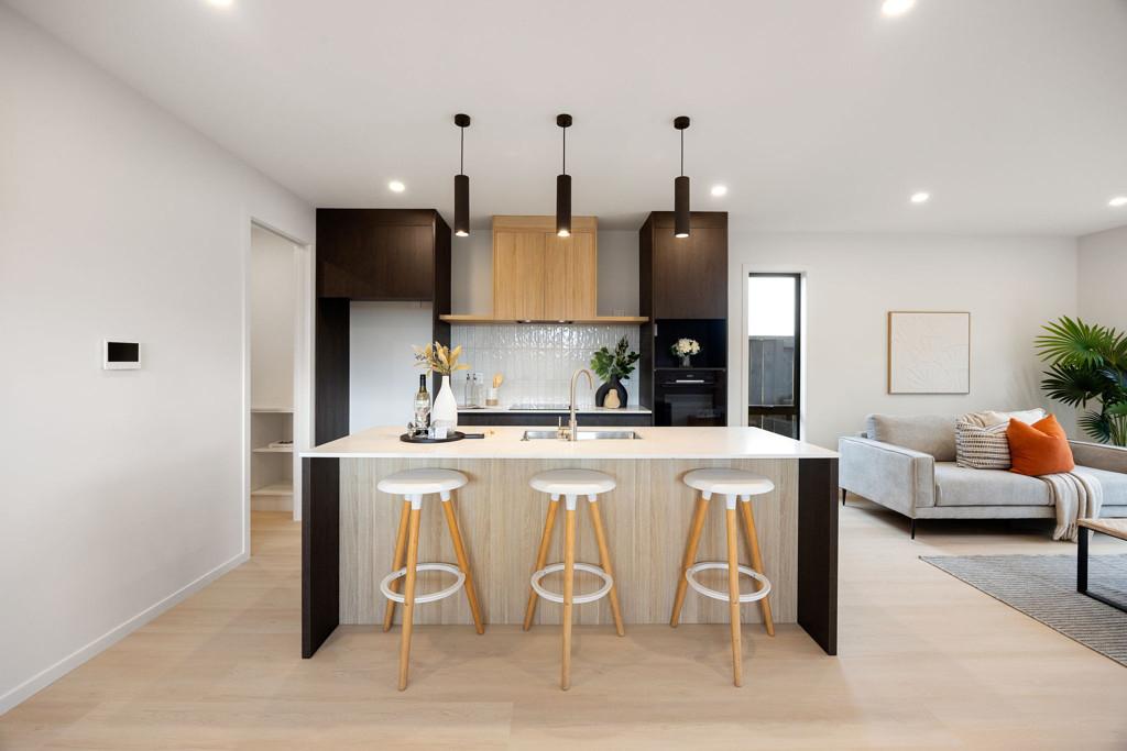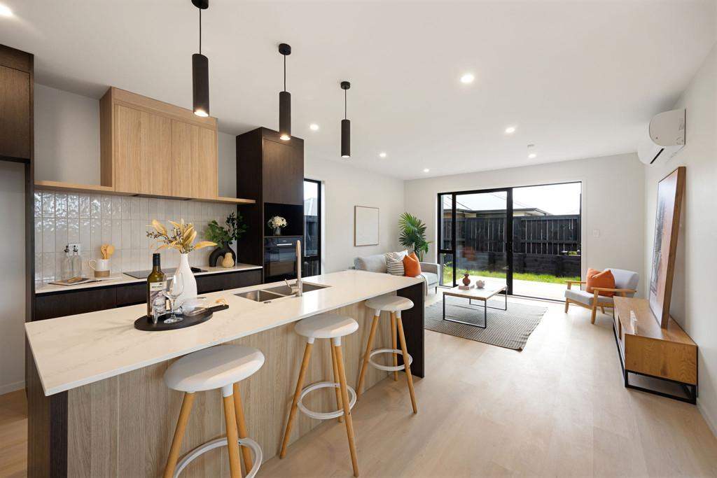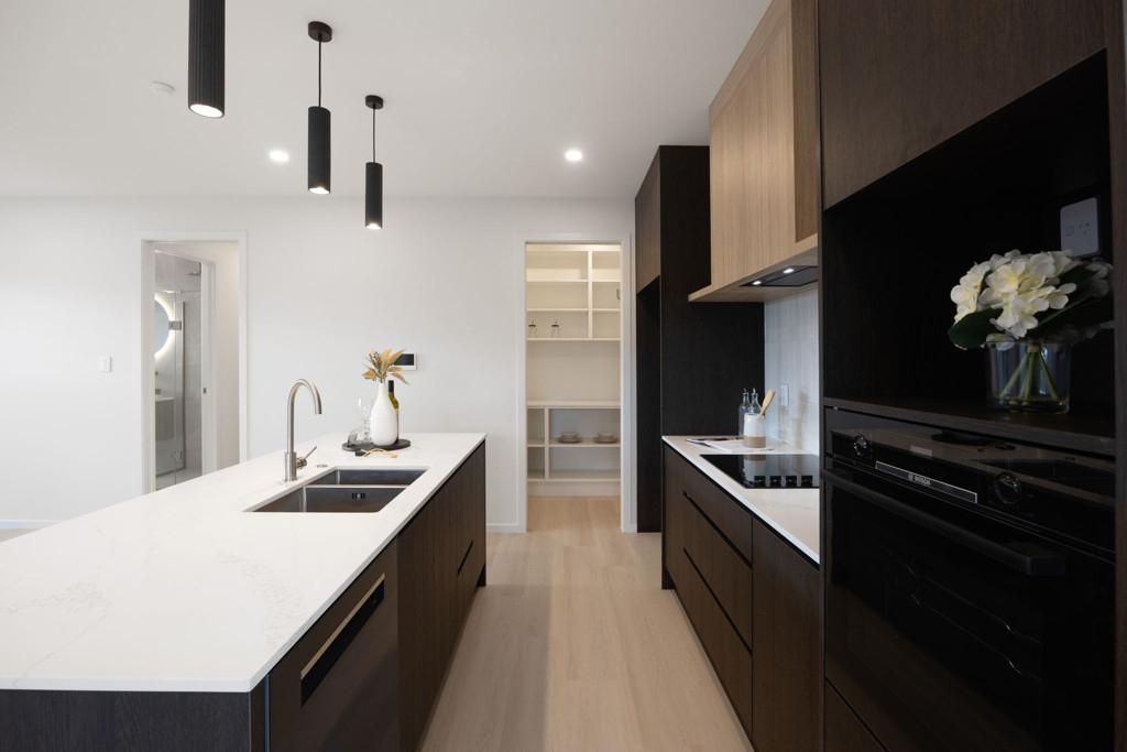 The heart of the home is the expansive open-plan living zone, where a high-stud ceiling and full-height doors create an immediate sense of space and light. The kitchen is a standout, featuring sleek finishes, quality appliances, and a highly practical scullery, perfect for keeping your preparation space tucked away while entertaining. This central hub flows seamlessly to the dining and living area, before extending out to a sun-soaked deck that invites relaxed outdoor living, family gatherings, and weekend unwinding.