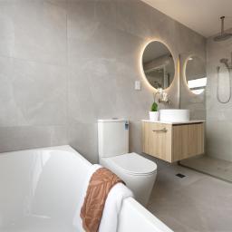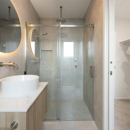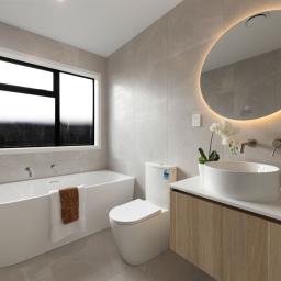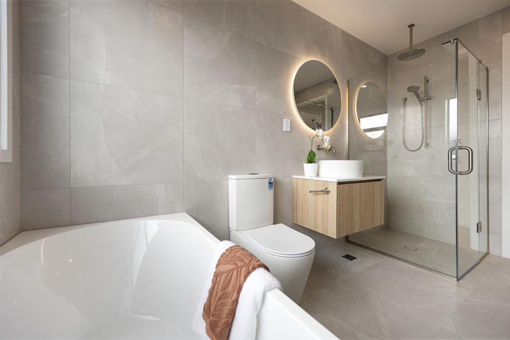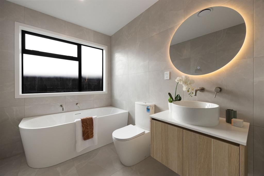 Accommodation is well-appointed, with three generous bedrooms including a beautifully designed master suite complete with a walk-in wardrobe and a fully tiled ensuite that delivers both luxury and longevity. The main bathroom mirrors the same high standard, finished with full tiling and contemporary fixtures for a cohesive, high-end feel throughout.