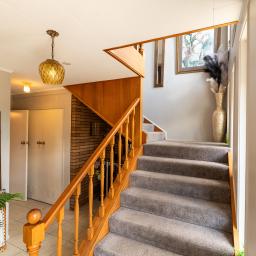 Upon entry, an inviting foyer welcomes you with space for personalised décor, creating an elegant introduction for guests. The lower level features a versatile suite with one room, complemented by a bathroom with a separate shower, vanity, and toilet. A generous communal area provides ample space for relaxation, hobbies, or recreation, complete with its own ranch slider for private access. Recently refreshed with neutral tones and contemporary carpet, this area is ideal for family and guests.