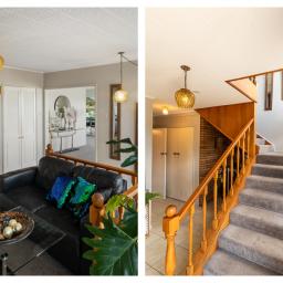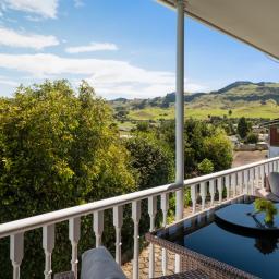 The master suite serves as a private sanctuary, featuring a ranch slider that opens to the front verandah - perfect for savoring the spectacular vistas. A walk-in robe and ensuite offer comfort and convenience, complemented by two additional rooms that complete the upstairs accommodation. The main bathroom has been recently refreshed, harmonising with the contemporary aesthetic.