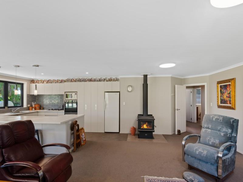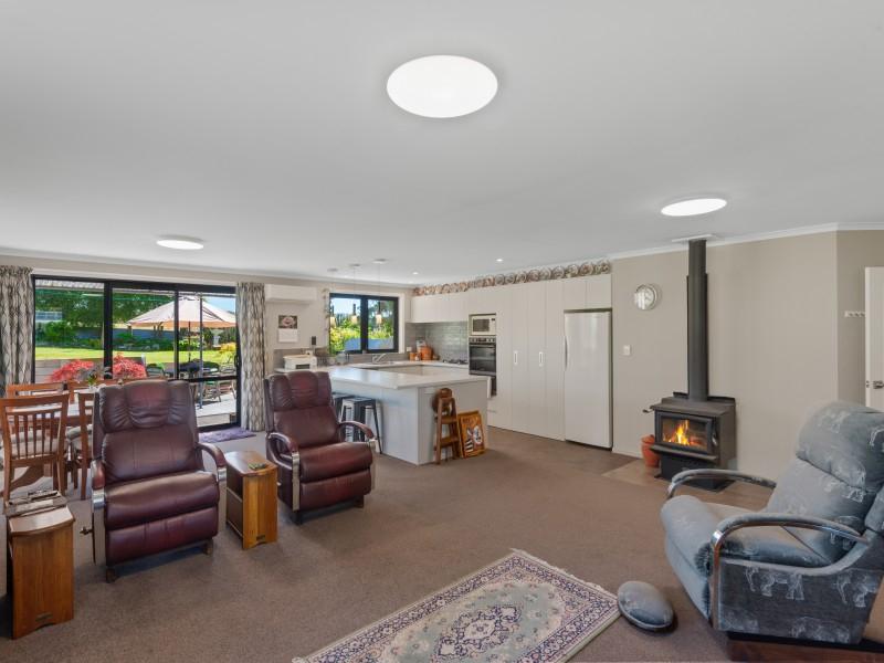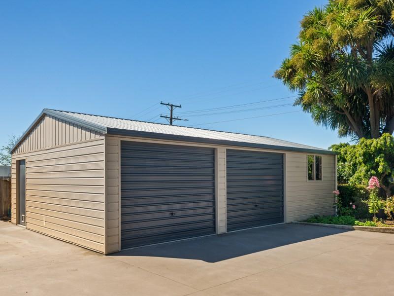 Comfort is assured year-round with a Woodsman freestanding log fire on wetback, complemented by a heat pump. The home offers a spacious family bathroom, a second toilet, and excellent hallway storage. Garaging is a real highlight, with double internal garaging providing extensive storage, plus a second double garage and generous workspace. There is also ample off-street parking, with room for a caravan or motorhome.